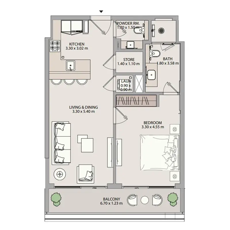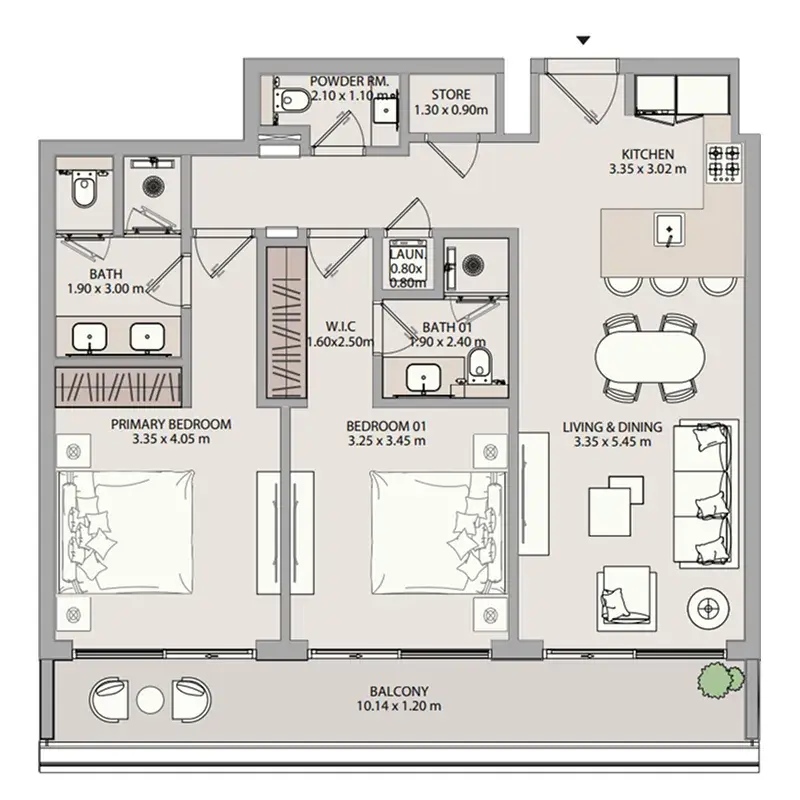 The project includes a range of well-designed homes, offering 1-bedroom, 2-bedroom, and 3-bedroom apartments. Each layout is crafted to balance space efficiency with practicality, providing open interiors, modern finishes, and large windows that bring in ample natural light. The 1-bedroom apartments offer around 731 sqft, the 2-bedroom units provide approximately 1,067 sqft, and the 3-bedroom apartments extend to nearly 1,671 sqft. All residences feature contemporary built-in kitchens, semi-furnished interiors, and a clean design palette that supports a comfortable, modern lifestyle.